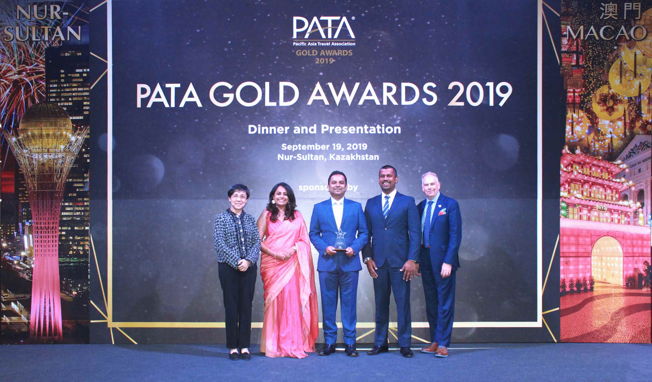 (වමේ සිට) මැකාවෝ රජයේ සංචාරක කාර්යාලයේ, අධ්යක්ෂිකා, මාරියා හෙලේනා ද සේනා ෆර්නැන්ඩස්, ශ්රී ලංකන් ගුවන් සමාගමේ නිර්මාණාත්මක කළමනාකරු, දිමුතු රණසිංහ, ශ්රීලංකන් ගුවන් සමාගමේ ජ්යෙෂ්ඨ අලෙවි කළමනාකරු සමින්ද පෙරේරා, ශ්රීලංකන් ප්රවර්ධන කළමනාකරු ගයාන් පීරිස් සහ PATA ප්රධාන විධායක නිලධාරී ආචාර්ය මාරියෝ හාඩි යන මහත්ම මහත්මීන් සම්මානය ලබාගැනීමෙන් පසු.