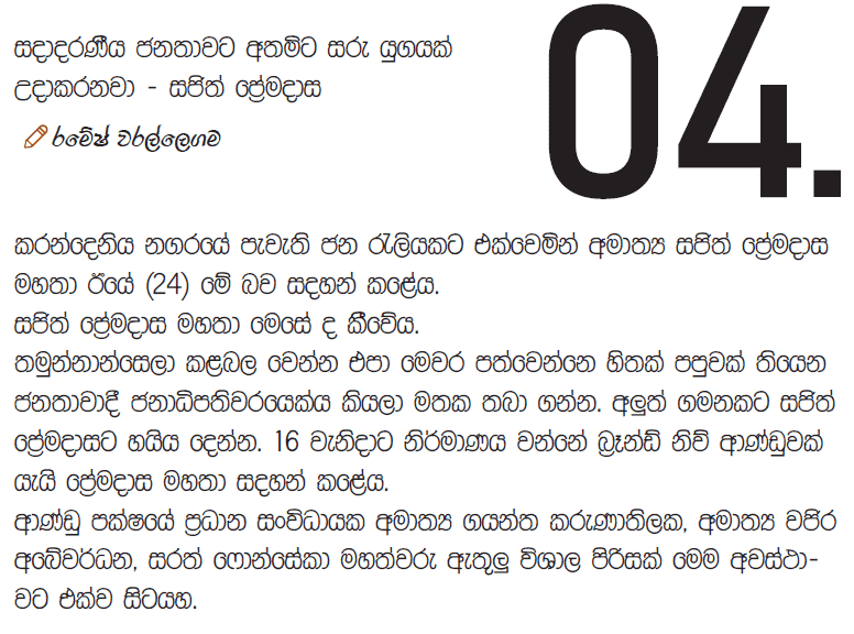 සදාදරණීය ජනතාවට අතමිට සරු යුගයක් උදා කරනවා – සජිත් ප්රේමදාස