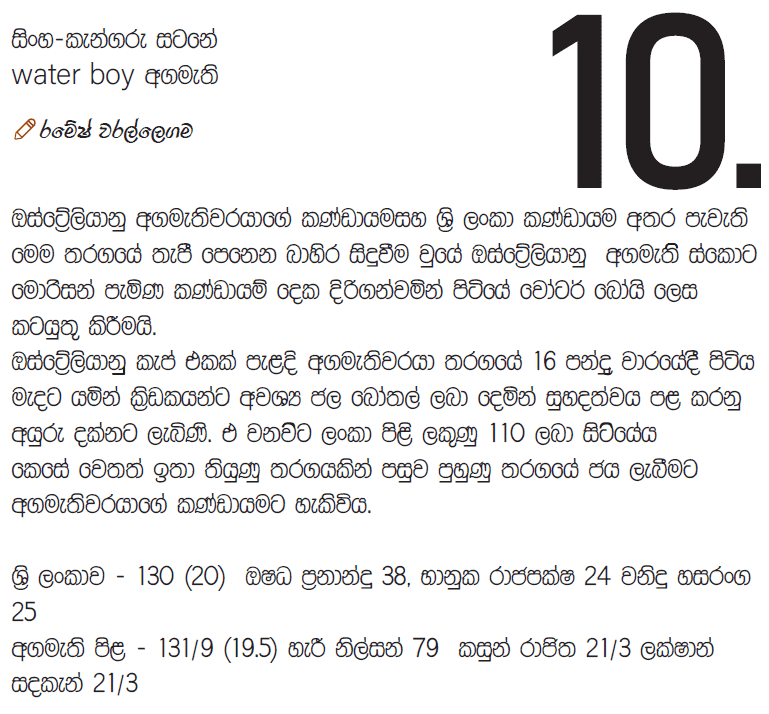 සිංහ කැන්ගරු සටනේ Water Boy අගමැති
