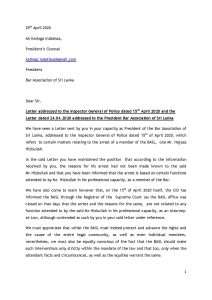 ශ්රි ලංකා නීතිඥ සංගමයේ සභාපති ජනාධිපති නීතිඥ කාලිංග ඉන්ද්රතිස්ස මහතා වෙත මෙම ලිපි දෙකම දැනට යොමු වී තිබේ.