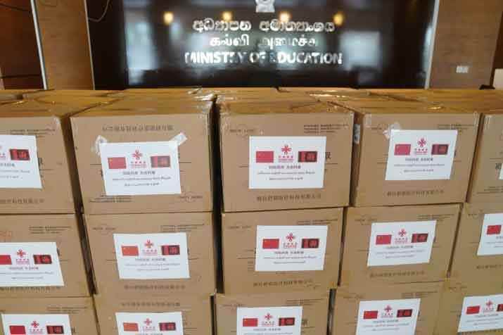 දිවයින පුරා අඩුපහසුකම් සහිත පාසල් සිසුන්ට බෙදා දීම සඳහා මුහුණු ආවරණ 125,000ක් ශ්රී ලංකාවේ චීන තානාපති කාර්යාලය විසින් අධ්යාපන අමාත්ය ඩලස් අලහප්පෙරුම මහතාට පරිත්යාග කළේය.