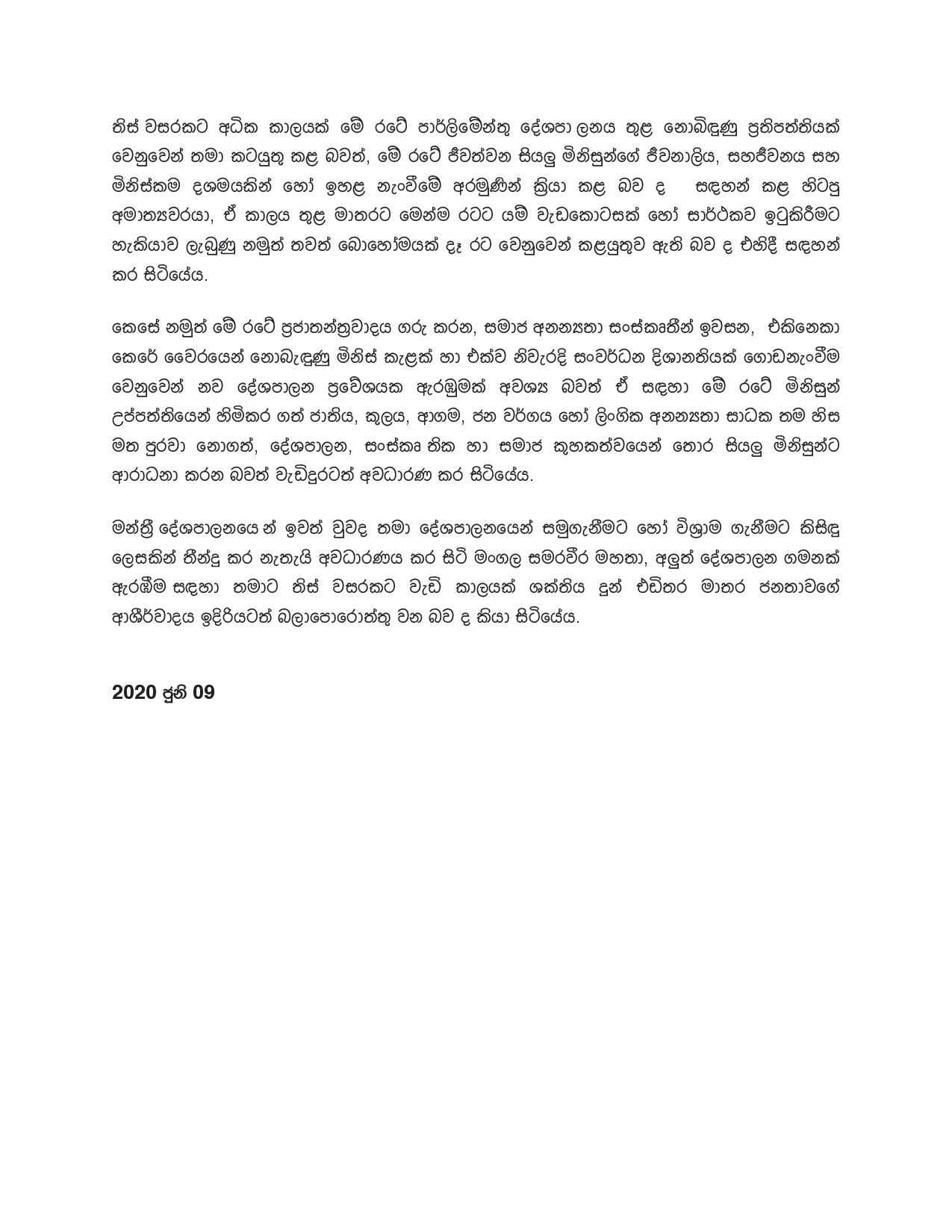 32 වසරක් පුරාවට තමන්ට ජන්දය ලබාදුන් සියලුම මාතර දිස්ත්රික්ක ජනතාවට සිය කෘතවේදය පළකර සිටින බවද නිවේදනයේ වැඩිදුරටත් සඳහන් කර ඇත.