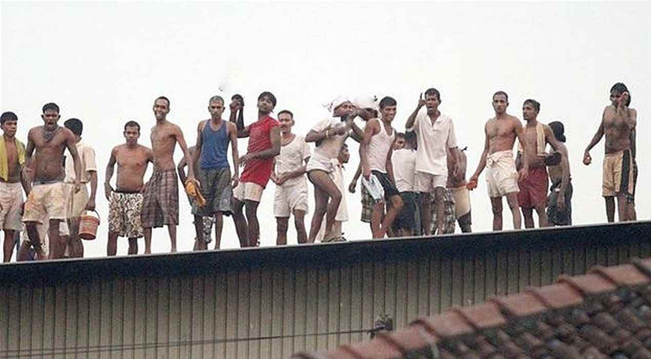 රිමාන්ඩ් සිරකරුවන් 40 දෙනෙකු පමණ වැලිකඩ බන්ධනාගාරයේ වහළ මතට නැග තිබේ.