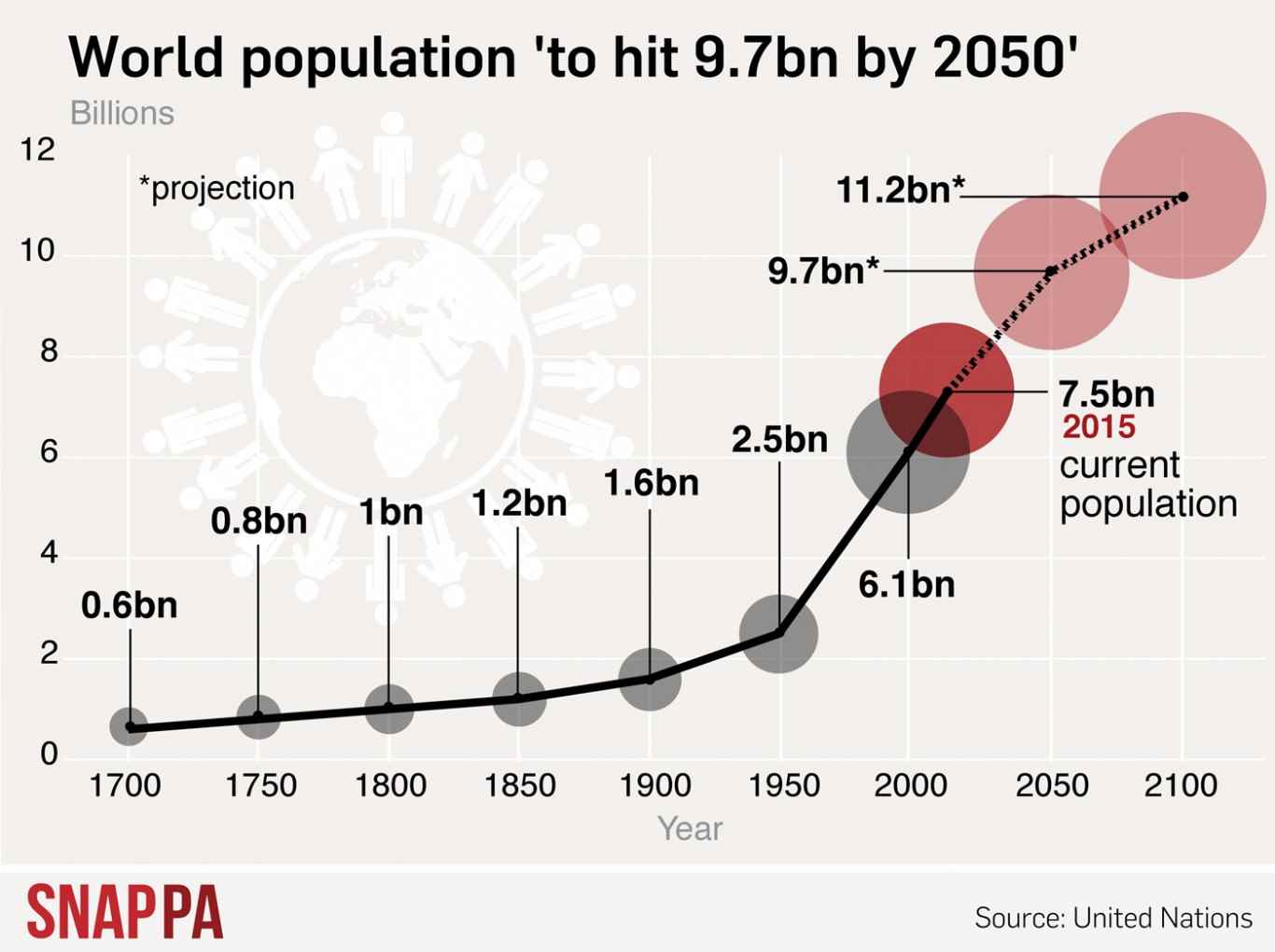 ලෝක ජනගහනය 2050 වසර වනවිට බිලියන 9.7කට ආසන්න වනු ඇති බව එක්සත් ජාතීන්ගේ සංවිධානය නිකුත් කළ නවතම වාර්තාවක දැක්වේ.