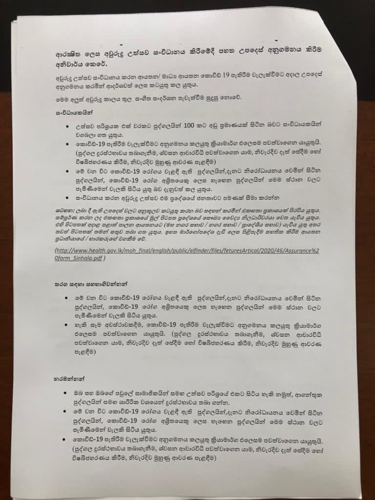 සිංහල හා දෙමළ අලුත් අවුරුද්ද වෙනුවෙන් නව සෞඛ්ය මාර්ගෝපදේශ මාලාවක් නිකුත් කර ඇත .