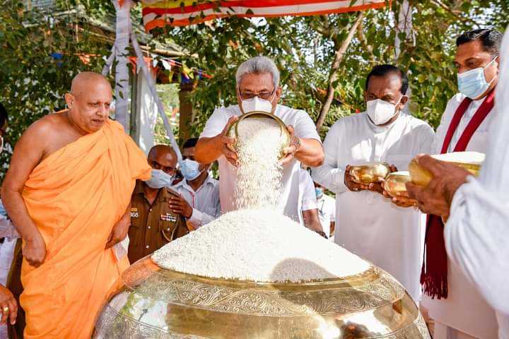 පූජ්‍ය පල්ලේගම සිරිනිවාස ස්වාමීන් වහන්සේ ප්‍රමුඛ මහා සංඝරත්නයේ සෙත් පිරිත් සජ්ජායනා මධ්‍යයේ පාත්‍රයට අලුත් සහල් පිරවීමේ චාරිත්‍රය ඉටු කෙරිණි.
