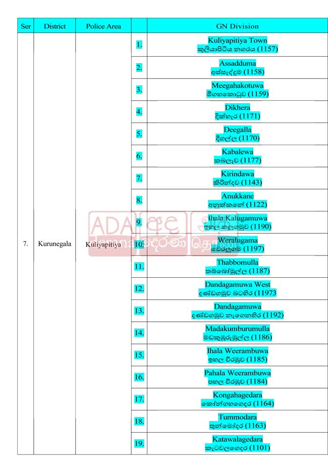 තවත් ප්රදේශ කිහිපයක් අද (17) අලුයම සිට හුදකලා කිරීමට රජය තීරණය කර තිබේ.
