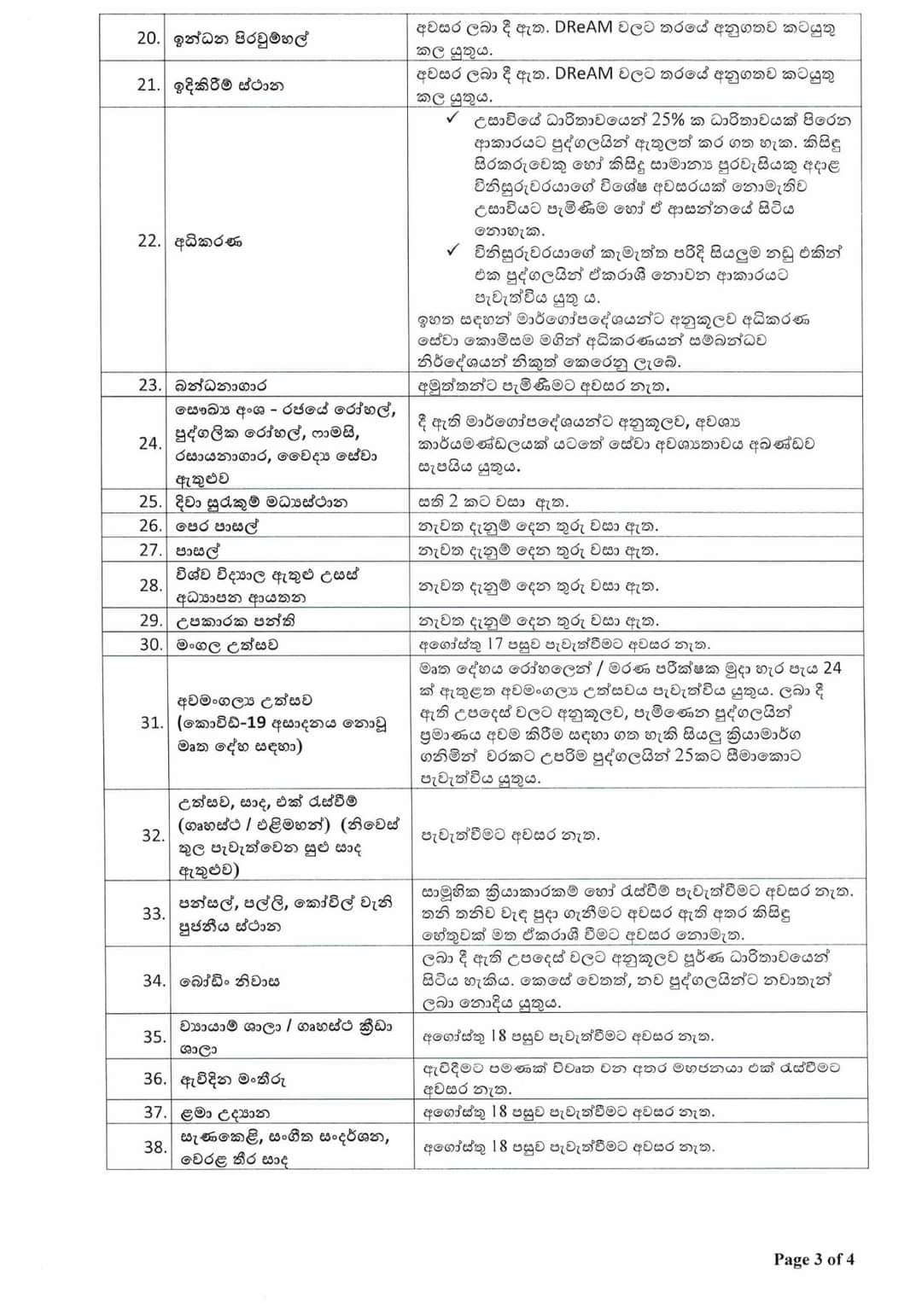 ඒ අනුව පසුගිය 16 වැනිදා පනවන ලද සෞඛ්‍ය මාර්ගෝපදේශනය අද දිනයේ මෙලෙස සවිස්තරව නිකුත් කරන ඇත.