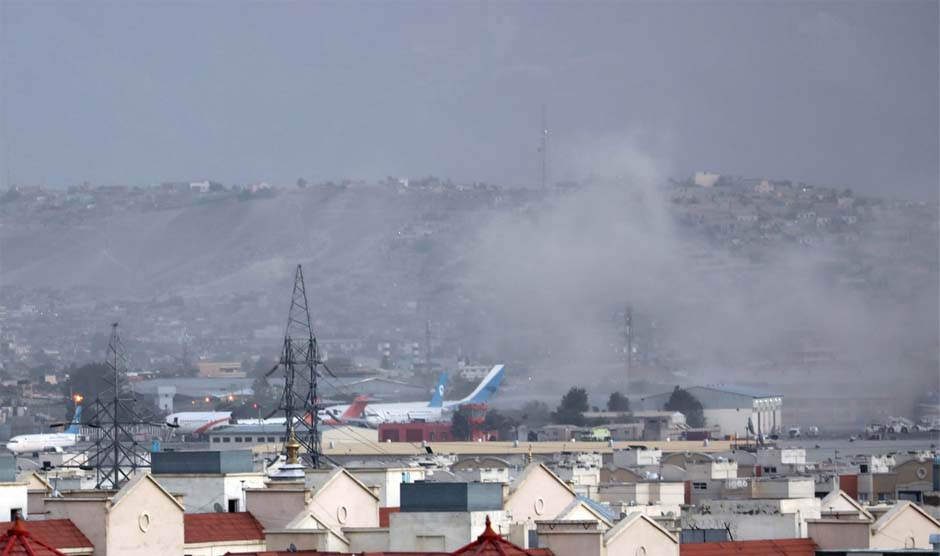 කාබුල් ගුවන් තොටුපලේ ජනාකීර්ණ දොරටුවලට මරාගෙන මැරෙන බෝම්බ යැයි සැකකෙරෙන පිපිරීම් දෙකක් එල්ල වූ අතර, පලා යාමට බලාපොරොත්තු වන මංමුලා සහගත සිවිල් වැසියන් අතර ලේ ගැලීමක් සිදු වූ බව වාර්තා විය.