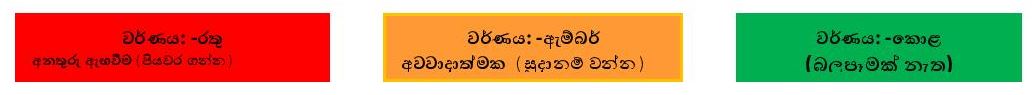 බස්නාහිර සහ සබරගමුව පළාත්වලත් මහනුවර සහ නුවරඑළිය දිස්ත්රික්කවලන් ඇතැම් ස්ථානවලට මි.මී. 150 ට වැඩි ඉතා තද වැසි ඇතිවිය හැක.