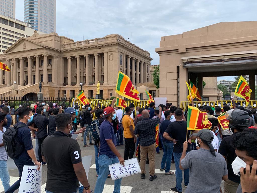 ඇදහැලෙන මහ වැසි නොතකා ඇතැම් විරෝධතාකරුවන් ඊයේ රාත්රීය පුරාවට ජනාධිපති ලේකම් කාර්යාලය අසල රැඳී සිටිමින් සිටින බවද වාර්තාවේ .