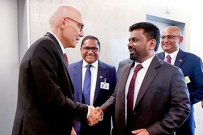 අනුර කුමාර දිසානායක මහතා සහ එක්සත් ජාතීන්ගේ මානව හිමිකම් පිළිබඳ මහ කොමසාරිස් වොල්කර් ටර්ක් (Volker Türk) මහතා අතර හමුවක් එක්සත් ජාතීන්ගේ මහලේකම් කාර්යාලයේදී සිදුව තිබේ.