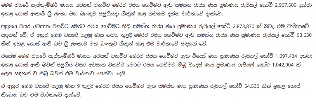 ශ්රී ලංකාව දැන් , කෝටි විසිනව ලක්ෂයක් ණයයි!