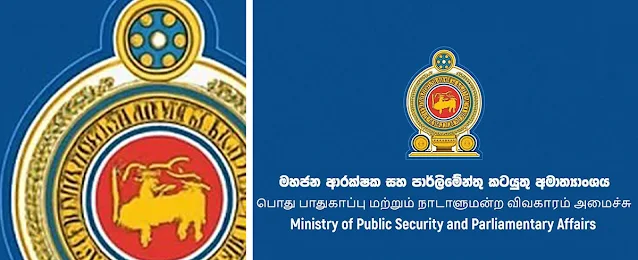 මහජන ආරක්ෂක හා පාර්ලිමේන්තු කටයුතු අමාත්යාංශ වෙබ් අඩවියේ රාජ්ය ලංඡනය විකෘති කර ඇති බවට සමාජ ජාල හරහා මේ වනවිට චෝදනා එල්ල වෙමින් පවතී .